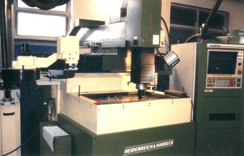 Makino EDNC 64 mit 8 fach Elektrodenwechsler Verfahrwege: X/Y/Z 600 mm / 400 mm / 250 mmArbeitstank: B/T/H 890 mm / 620 mm / 370 mmTragfähigkeit : 1500 kg.Bild anklicken zum vergrößern